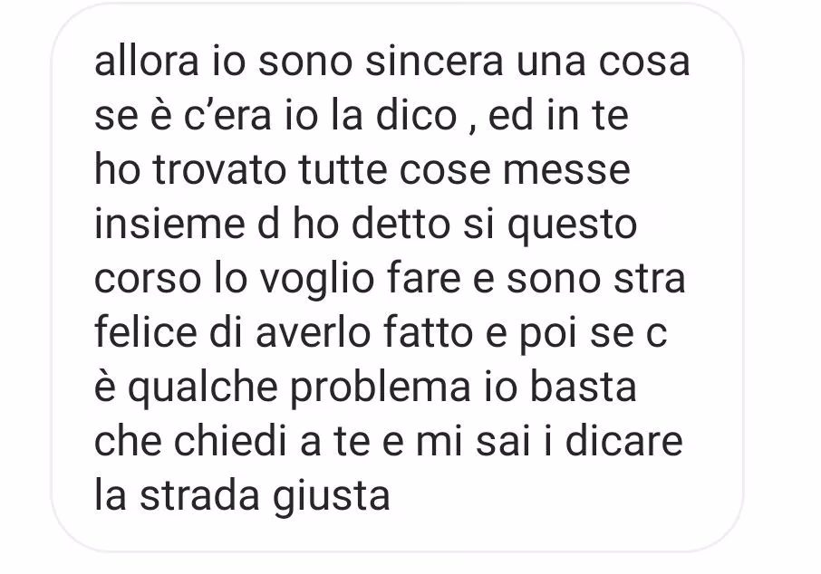 Io ho fatto con Martina 4 corsi e già ne ho altri in programma… Ho trovato Professionalità ad alti livelli… Tutto lo staff è cortese e disponibile. Locali puliti ed attrezzati di tutto, una bella esperienza davvero!